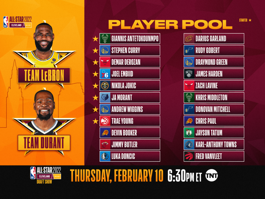 En fazla oy alan isimler LeBron James (Los Angeles Lakers) ve Kevin Durant (Brooklyn Nets) kaptan seçilmişti. Doğu'da Giannis Antetokounmpo (Milwaukee Bucks), Joel Embiid (Philadelphia 76ers), DeMar DeRozan (Chicago Bulls) ve Trae Young (Atlanta Hawks), Batı'da ise Nikola Jokic (Denver Nuggets), Stephen Curry, Andrew Wiggins (Golden State Warriors) ve Ja Morant (Memphis Grizzlies) ilk 5'te sahaya çıkma hakkı kazanmıştı. Takım kadroları ise kaptanlar LeBron James ve Kevin Durant tarafından 11 Şubat'ta canlı yayında gerçekleştirilecek draft ile belirlenecek.