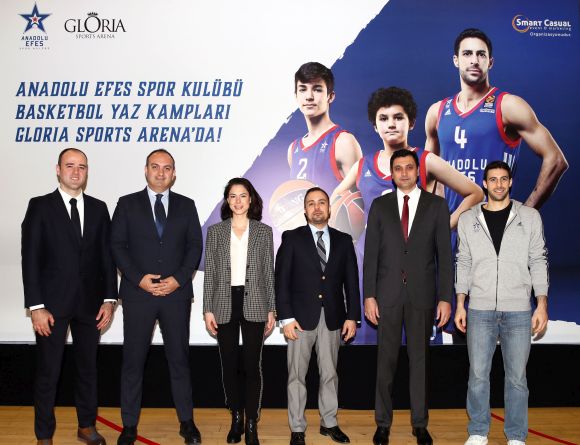 Gloria Sports Arena Satış Müdürü Görkem Dönmez ise Anadolu Efes Kulübü ile basketbol yaz kampları konusunda yaptıkları iş birliğinin çok olumlu sonuçlar doğuracağına inandığını belirtti. Dönmez, 105 bin metrekarelik alanda 50'den fazla spor branşı için kamp imkanı sunduklarını anlatarak, “Gloria Sports Arena açıldığından beri 91 ülkeden 15 binden fazla misafir ağırladık. 2016-2017'de Gloria Sports Arena'yı tercih eden 57 sporcumuz ve 13 takımımız olimpiyat, Avrupa ve dünya şampiyonalarında toplam 86 madalya almıştır. Hedefimiz 2020 Tokyo Olimpiyatları'na kadar 150 madalyaya ulaşmak ve Gloria Sports Arena'nın 5. yaşına gireceği 2020 olimpiyat senesinde 200 madalyayı geçmektir.” şeklinde konuştu.