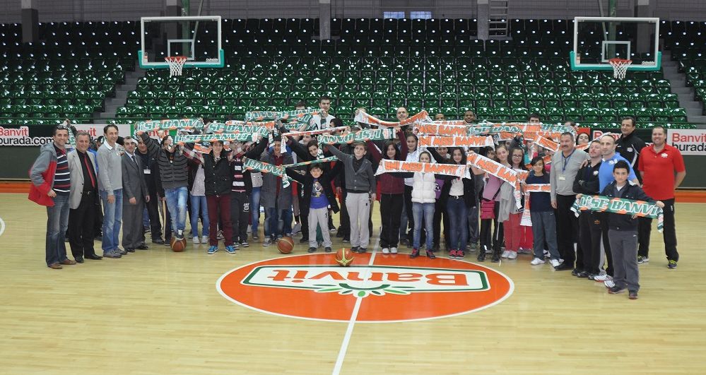 Kulübe girişlerinden itibaren Kulüp personelinin ilgisi ile karşılaşan minikler, kendilerine hediye edilen Banvit atkılarını hemen boyunlarına geçirerek Kulüp içerisindeki gezilerine başladılar.