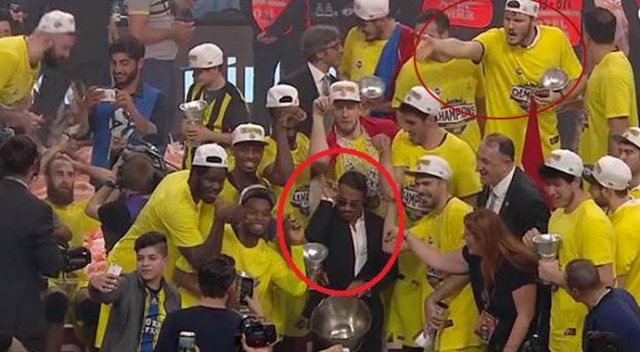 O tepki asla, kendisinin şahsına karşı ortaya çıkan bir tepki değil. Orada, Fenerbahçe Spor Kulübü'nün bireyleri var. Türkiye'ye gelen Avrupa'nın en büyük kupasının Fenerbahçe bireylerince kutlandığı bir yerde, Fenerbahçe Spor Kulübü'ndeki büyük ailemiz harici kimsenin orada bulunmaması gerekiyordu. Kendisinin restaurantında yemek yemişliğim de vardır, merhabamız da var. O anda öyle bir tepkim oluştu ve ben bu şekilde yansıyacağını da tahmin etmemiştim. Tepkimi, kesinlikle yanlış anlaşılması için göstermedim. Tek sebebim; Orada Fenerbahçe ailesi üyeleri haricinde kimsenin olmaması gerektiğine inanıyor olmam. Öyle bir şey görünce, zaten herkeste adrenalin patlaması yaşanıyor. Kendisinin ne işi var orada yani? Ondan sonra koçumuz da gördü zaten zannedersem, koçumuzun da oradaki müdahalesiyle olay kapatıldı Üzücü bir olay, çünkü Türkiye Cumhuriyeti'nin evlatlarıyız hepimiz. Ve Türkiye Cumhuriyeti tarihinde böyle bir başarı yaşanırken, bırakın coşkuyu da bu zafer uğruna alın teri dökenler yaşasınlar. Önemli olan sadece buydu, şahıslarla alakalı bir tepkili asla mümkün olamaz.