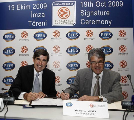 Efes Pilsener'in ULEB Avrupa Ligi ana sponsorluğunu 3 yıl daha uzatması nedeniyle The Ritz Carlton Otel'de düzenlenen imza törenine katılan Jordi Bertomeu, basın mensuplarının sorularını yanıtladı.
