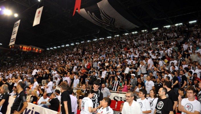 Beşiktaş Milangaz'ın kazanması halinde şampiyonluğa ulaşacağı karşılaşmayı izlemeye gelen siyah-beyazlı taraftarlar, takımlarını coşkuyla destekledi.