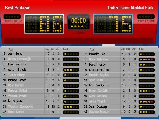 İlk yarı sonunda 43-41 Trabzonspor Medikal Park üstünlüğü vardı. Üçüncü çeyrekte ise Best Balıkesir 27-15'lik periyot üstünlüğü yakaladı. Final periyodunda da üstünlüğünü koruyan Spor Toto Basketbol Ligi'nin yeni ekibi maçı 86-75 galip bitirdi.