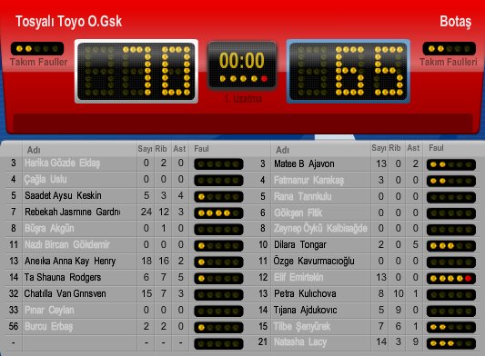 Tosyalı Toyo Osmaniye'de Rebekkah Gardner 24 sayı- 12 ribaund- 3 asistle mücadele ederken Botaş adına Natasha Lacy 14 sayı- 3 ribaund- 9 asist üretti.