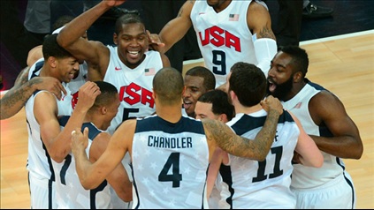 ABD'nin süperstarlarının oluşturduğu Rüya Takım, 2008 Pekin'de devirdiği İspanya'yı yine mağlup etti. Olimpiyatları üst üste 2. kez yenilgisiz olarak tamamlayan ekipte Kevin Durant, 30 sayıyla Boğalar'ın işini bitirdi.Olimpiyatlarda erkeklerde basketbolun tartışmasız favorisi olarak turnuvaya başlayan ABD, herkesin tahmin ettiği gibi şampiyon oldu. NBA’deki yıldızlarıyla Londra’da sahne alan Rüya Takım, final maçında 2008 Pekin’de de devirdiği İspanya’yı 107-100 mağlup ederek üst üste ikinci kez, toplamda ise 14. altınına ulaştı. Aynı 2008’de olduğu gibi yine hiçbir maçını kaybetmeden 1 numara olmayı başaran ABD’yi zafere götüren isim ise ülkemizde düzenlenen 2010 Dünya Şampiyonası’nda finalde bizi de yıkan adam olarak önplana çıkan Kevin Durant’tı. Kritik anlarda sahne alan Durant, mücadeleyi 30 sayıyla tamamladı. LeBron James 19, Kobe Bryant da 17 sayıyla zafere katkıda bulunan diğer isimler oldu.