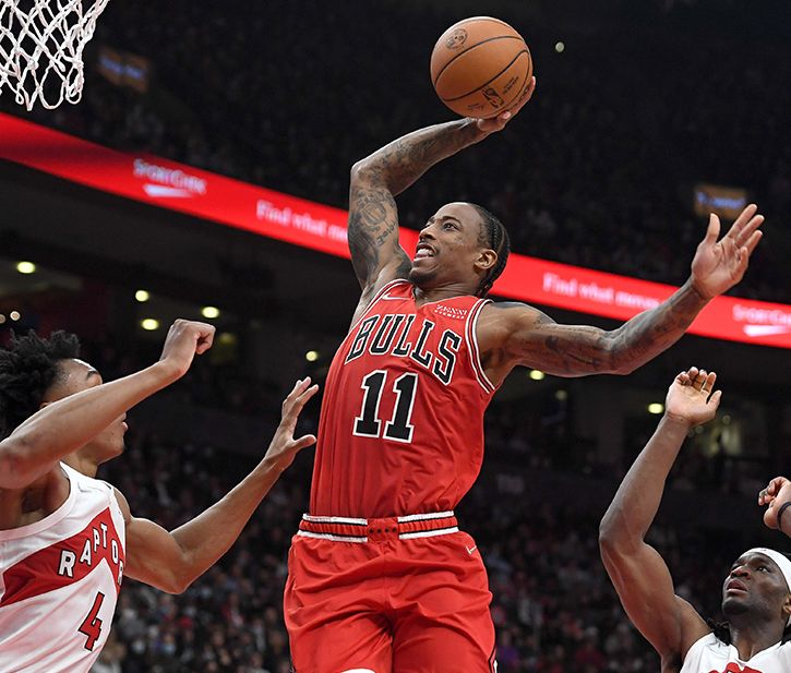 Konuk ekip Bulls'ta DeMar DeRozan, eski takımı Raptors'a karşı 26 sayı, 6 asist, 4 ribauntluk performans sergiledi. Zach LaVine 22, Nikola Vucevic 17, Lonzo Ball 15 sayıyla galibiyete katkı sağladı.