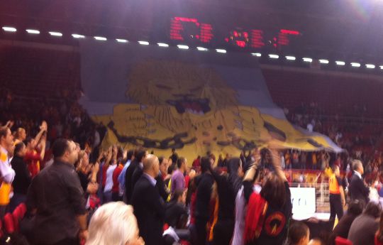 THY Euroleague D Grubu'nda Union Olimpija'yı konuk eden Galatasaray Medical Park'ta taraftarlar maça ilgi gösterirken yapılan pankart şovu büyüledi.