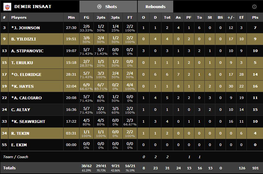 Maçın en skorer ismi 21 sayıyla Prievidza'dan Igor Maric olurken, Demir İnşaat Büyükçekmece adına Kenny Hayes 16 sayı üretti.