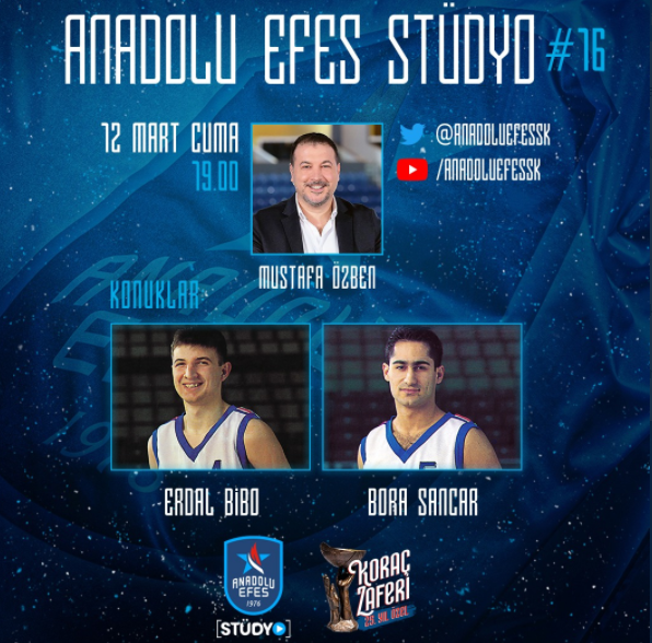 YouTube üzerinen yayınlanan Anadolu Efes Stüdyo'ya o dönem kadroda yer alan Erdal Bibo ve Bora Sancar katılacak ve o günler konuşulacak.