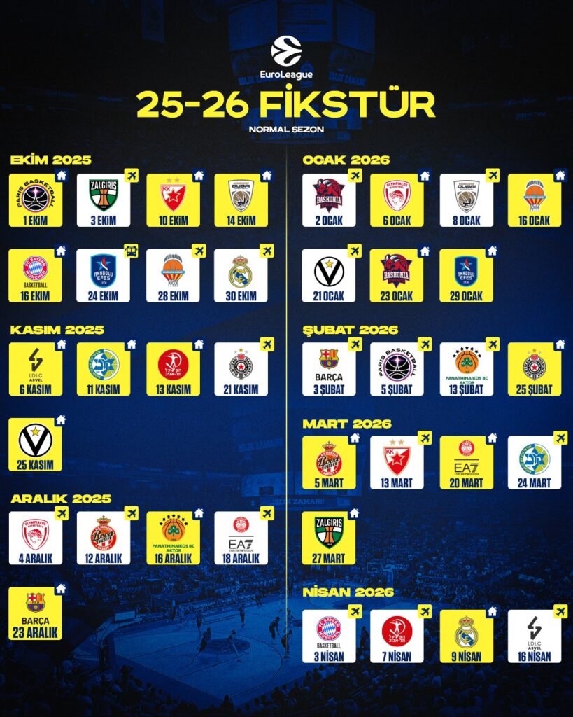Euroleague’de 2025-2026 sezonu fikstürü çekildi. İlk hafta maçları ve temsilcilerimizin fikstürleri şu şekilde oldu.
