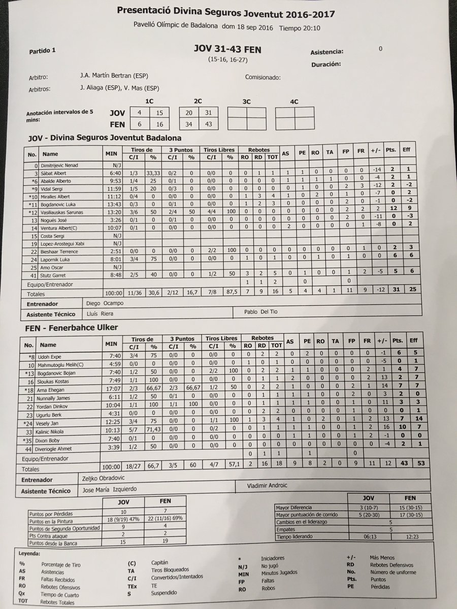 13 hücum ribaundu alan ve ikinci şanslardan 19 sayı çıkaran Badalona'da Garrett Stutz 20 sayı 11 ribaunt, Bogdanovic 19 sayı 6 ribaunt 2 asist, Vasiliuskas 14 sayı 2 asist, Sabat 10 sayı 4 ribaunt 5 asistle etkili oldu.