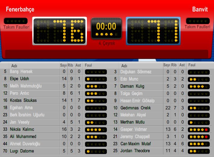 Maçın en skorer oyuncusu Banvit formasıyla 22 sayı kaydeden Orelik olurken, Fenerbahçe'de Kalinic 16, Sloukas ve Udoh 14, Ali Muhammed ise 10 sayıyla çift hanelere ulaşarak galibiyete katkı sağladı.