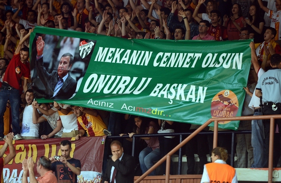 Karşılaşmanın bitimine iki dakika kala Galatasaray Medical Park taraftarları, vefat eden Bursaspor Kulübü Başkanı İbrahim Yazıcının fotoğrafının yer aldığı, “Mekanın Cennet Olsun Onurlu Başkan” yazılı pankart açtı.