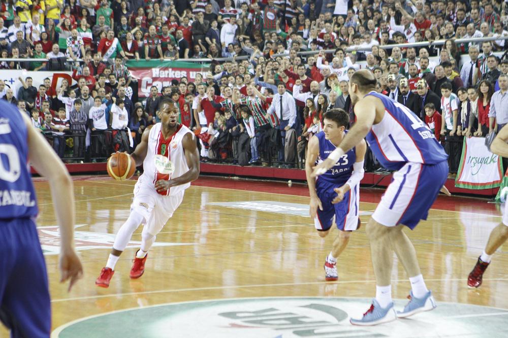 Pınar Karşıyaka istediği tempoyu sahaya yansıtırken savunma bazlı sayılarıyla farkı açtı. Tam sahada baskı yapıp alan savunmasına yerleşen Pınar Karşıyaka, Efes'i top kayıplarına zorlayınca 14. dakikada 30-19 öne geçti. Doğuş, Cedi ve Emircan'ı sahaya sürüp tempoyu kontrol ederek savunmasıyla oyuna dönen Efes farkı 2 sayıya kadar indirdi ve ilk yarı 41-39 sonuçlandı. Dengede giden maçta Pınar Karşıyaka'da Cemal Nalga iki pota altında da çok etkili olarak fark Kaf-Kaf lehine açıldı. Son 3.35 dakikaya 81-71 önde giren Pınar Karşıyaka maçı da 92-84 kazandı.
