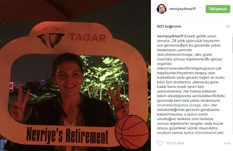 Son olarak A Milli Kadın Basketbol Takımı'nın 2016 Rio Olimpiyatları'ndaki kadrosunda yer alan Nevriye Yılmaz, sosyal medya hesabı Instagram'dan basketbolu bıraktığını duyurdu.