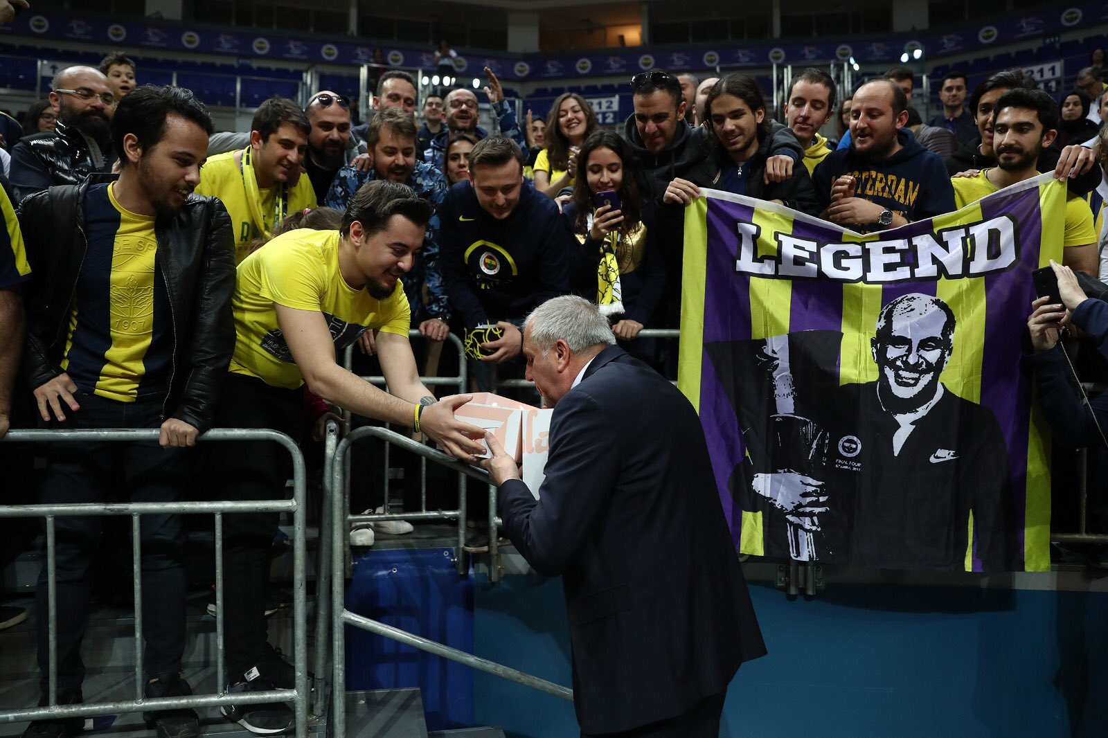 Maçın ardından Sarı-Lacivertli taraftarlar 59 yaşına basan Obradovic'e pasta sürprizinde bulundu.