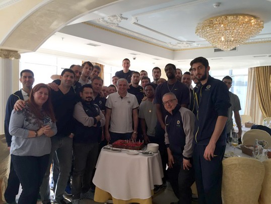 Lokomotiv Kuban ile oynayacağı Euroleague Top 16 turu 10. hafta maçı için Rusya’da bulunan Fenerbahçe'de Başantrenör Zeljko Obradovic’in doğum gününü kutlandı.