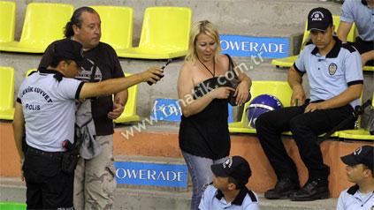Beko Basketbol Ligi’nde geçen sene Galatasaray Cafe Crown ile Fenerbahçe Ülker takımları arasında yapılan maça, Sarı-Kırmızılı tribünlere parmak çıkartarak olayların fitilini yakan Fenerbahçe taraftar grubu ‘Kill For You üyesi’ olan Ayşe Demet Karabulut, dün de yine takımını yalnız bırakmadı. Fenerbahçe Ülker’in kazanması halinde şampiyon olabileceği maçta Karabulut, cezasından ders almış olacak ki, herhangi bir olaya karışmadı. Karabulut sadece tribünler boşaltılırken, salondan çıkmakta direndi.