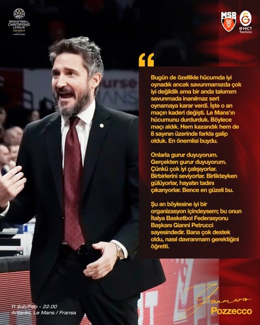 Gianmarco Pozecco, Le Mans Sarthe Basket maçı galibiyeti ardından açıklamalarda bulundu.