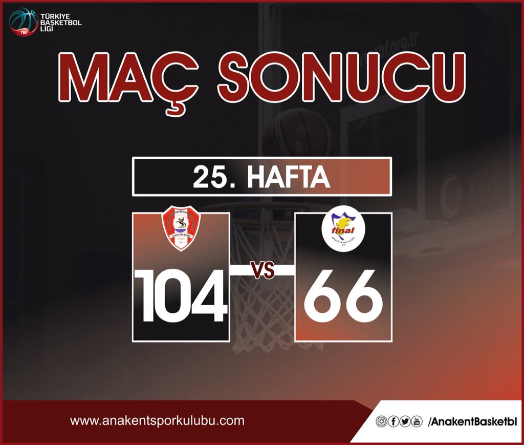 TBL 25.haftada Samsun BŞB Anakent kendi sahasında ağırladığı Final Gençlik’i 104-66 yenerek 14.galibiyetini aldı.