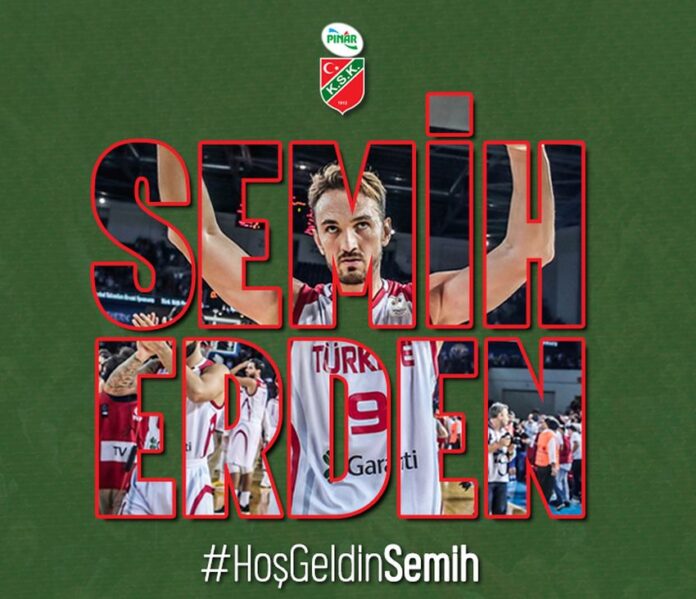 Kulüpten, “2019-2020 sezonu transfer çalışmalarını sürdüren Pınar Karşıyakamız, milli pivot Semih Erden’i kadrosuna kattı. Takımımız, 33 yaşındaki tecrübeli oyuncu ile 2 yıllık resmi sözleşme imzaladı. Semih Erden’e ailemize hoş geldin diyor yeşil-kırmızılı formamız altında başarılar diliyoruz” açıklaması yapıldı.