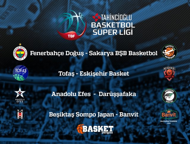 Normal sezonu 3. sırada noktalayan Anadolu Efes ise sıralamada 6. olan Darüşşafaka ile karşılaşacak.