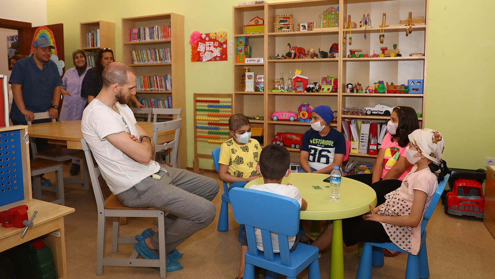 Vakıfta tedavi gören çocuklarla bir araya gelen Sinan, onlarla sohbet ederek oyunlar oynadı ve hediyeler verdi.