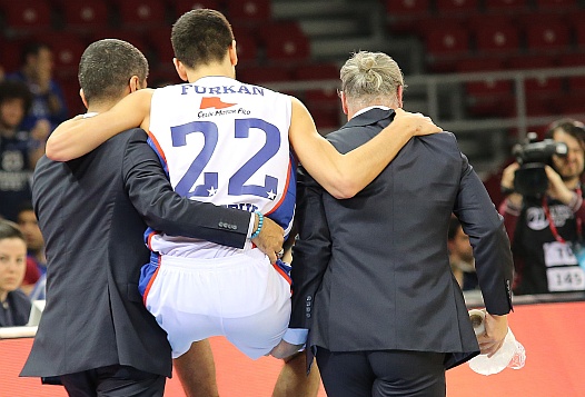 Anadolu Efes'in ligde dün Torku Konyaspor’u mağlup ettiği maçta sakatlanan Furkan Korkmaz'ın durumu belli oldu. Mücadeleyi yarıda bırakan genç oyuncunun sol ayak bileğinde dönmeye bağlı zorlanma tespit edildiği ve 3 hafta formasından uzak kalacağı öğrenildi. Furkan Korkmaz Avrupa Ligi çeyrek finalinde Real Madrid ile oynanacak maçlarda forma giyemeyecek.