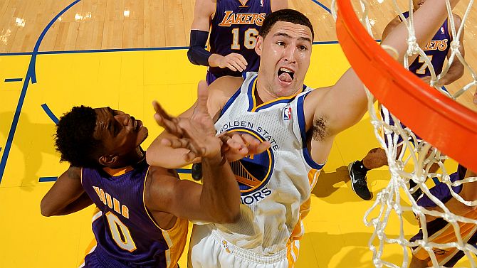 NBA'de sezon öncesinde kadrosuna kattığı Andre Iguodala ile ligin iddialı takımlarından biri olması beklenen Golden State Warriors, Kaliforniya eyaletinin bir başka takımı Los Angeles Lakers ile karşılaştı. Warriors, 23 yaşındaki şutörü Klay Thompson'ın, 7'de 5 üç sayı olmak üzere kullandığı 19 şutta 15 isabet bularak 38 sayıyla kariyer rekorunu kırdığı maçta, Lakers'ı 125-94 yendi.