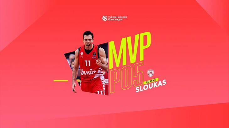 Euroleague'in resmi internet sitesinden yapılan açıklamada, Olympiakos'un evinde Fenerbahçe'yi 84-72 mağlup ettiği karşılaşmada iyi performans gösteren Yunan basketbolcu Kostas Sloukas'ın MVP seçildiği belirtildi. 33 yaşındaki basketbolcu, eski takımı sarı-lacivertliler karşısında 22 sayı, 6 asist, 3 ribaund ve 1 top çalma ile oynadı ve 27 verimlilik puanı aldı.