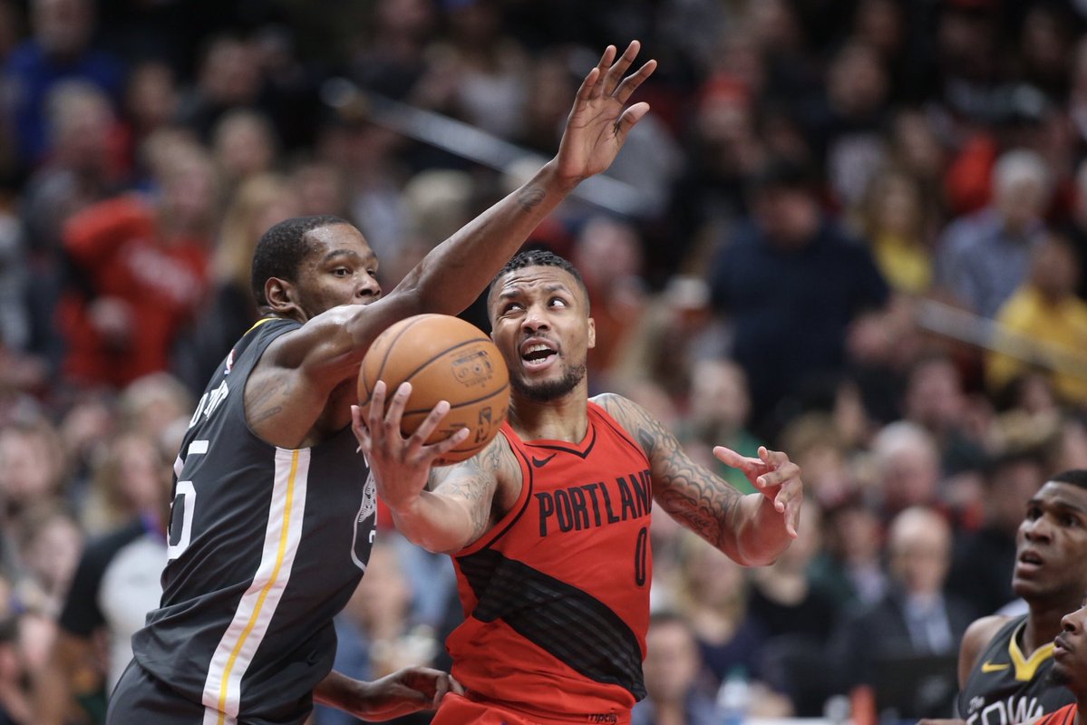 Müthiş düelloda Damian Lillard 44 sayı 8 asistle oynarken Kevin Durant'in 50 sayı 7 ribaund 6 asisti yetmedi.