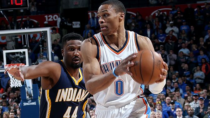 NBA'de Oklahoma City Thunder, Indiana Pacers'ı 105-92 yenerek üst üste 7. galibiyetini alırken Enes Kanter başarılı performansını sürdürdü. Enes 15 sayı 5 ribaunt ile skora katkı sağlarken Westbrook 20 sayı, 11 ribaunt ve 10 asistle bu sezon 3. kez triple-double yaptı. Ibaka'nın da 23 sayı ve 10 ribauntla double double'a imza attığı mücadelede Indiana Pacers'ta C.J. Miles 21 sayı ve George Hill 13 sayı 8 asistle mücadele etti.