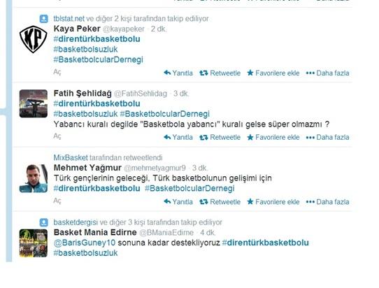 Türkiye liglerinde forma giyen çok sayıda oyuncu sosyal paylaşım sitesi Twitter üzerinden “Basketbolsuzluk” ve “Direntürkbasketbolu” etiketleriyle paylaşımlar yaptı.
