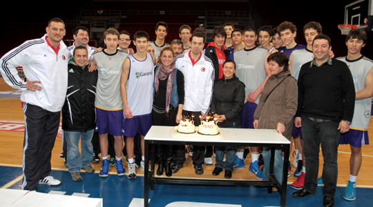 Yıldız Millilerimizin bu sabah Abdi İpekçi Spor Salonu’nda yaptığı antrenmanın ardından teknik heyet ve Ay-Yıldızlı oyuncular başantrenör Ömer Uğurata’nın doğumgününü pasta keserek kutladılar.33 yaşına giren Uğurata’nın doğumgünü kutlamasına Türkiye Basketbol Federasyonu Milli Takımlar Departmanı çalışanları da katıldı.